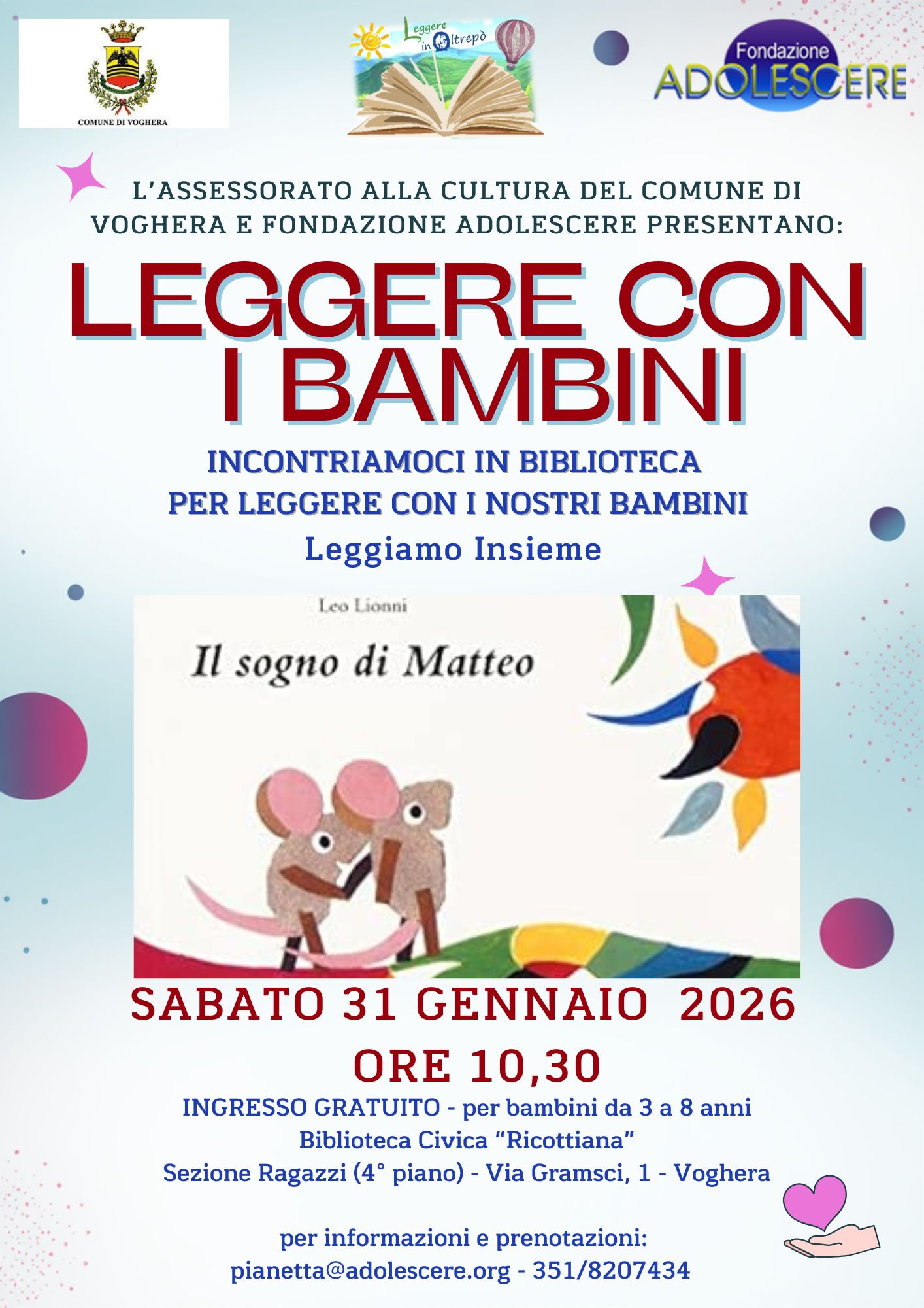 ore 10:30 - presso civica biblioteca ricottiana 4° piano sezione ragazzi - via Gramsci, 1